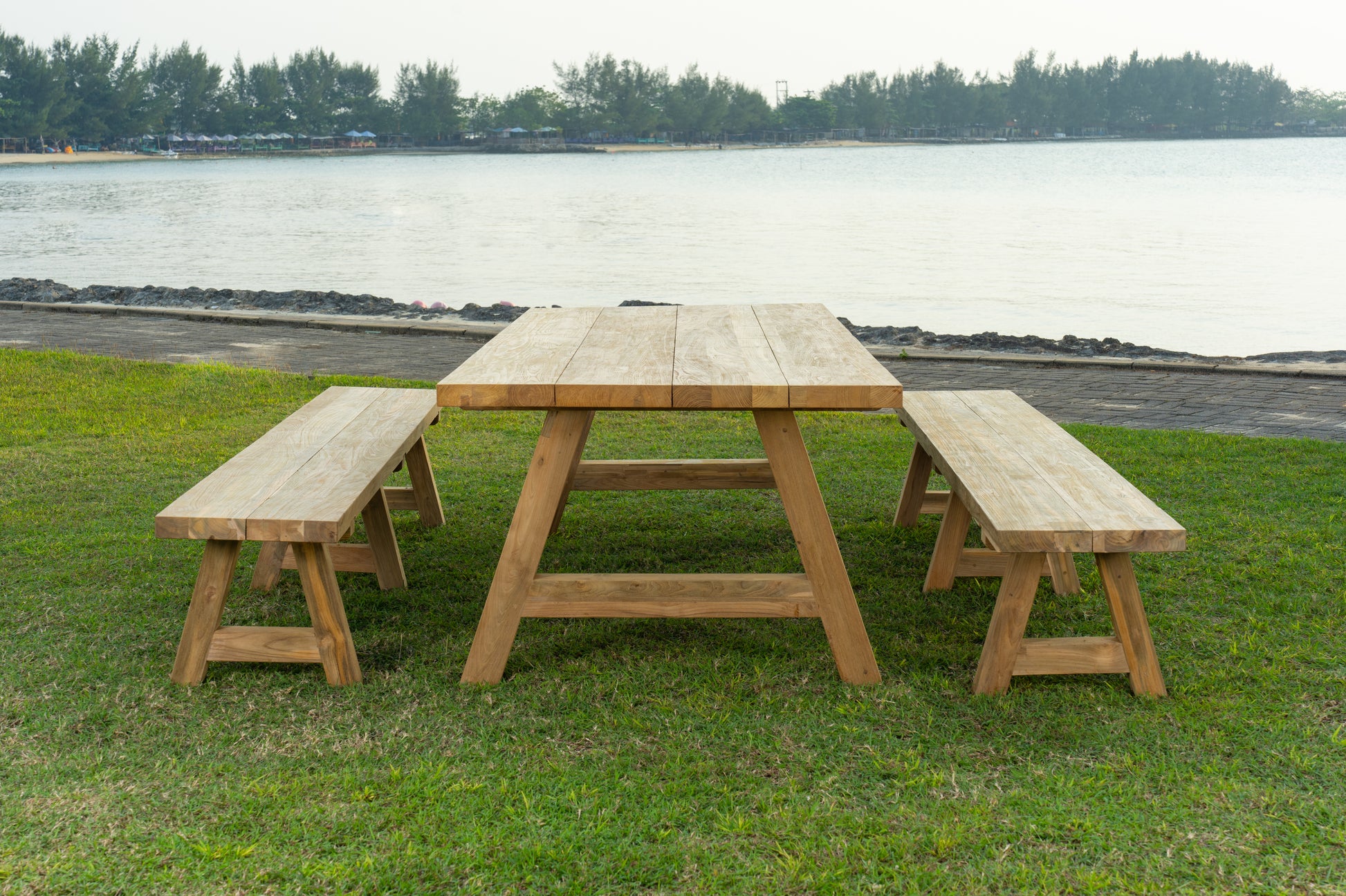 For those who want to add chairs or prefer them over benches, the Kastil table is a perfect fit the Salawati chair series , which is crafted from the same premium teak wood for a harmonious whole.