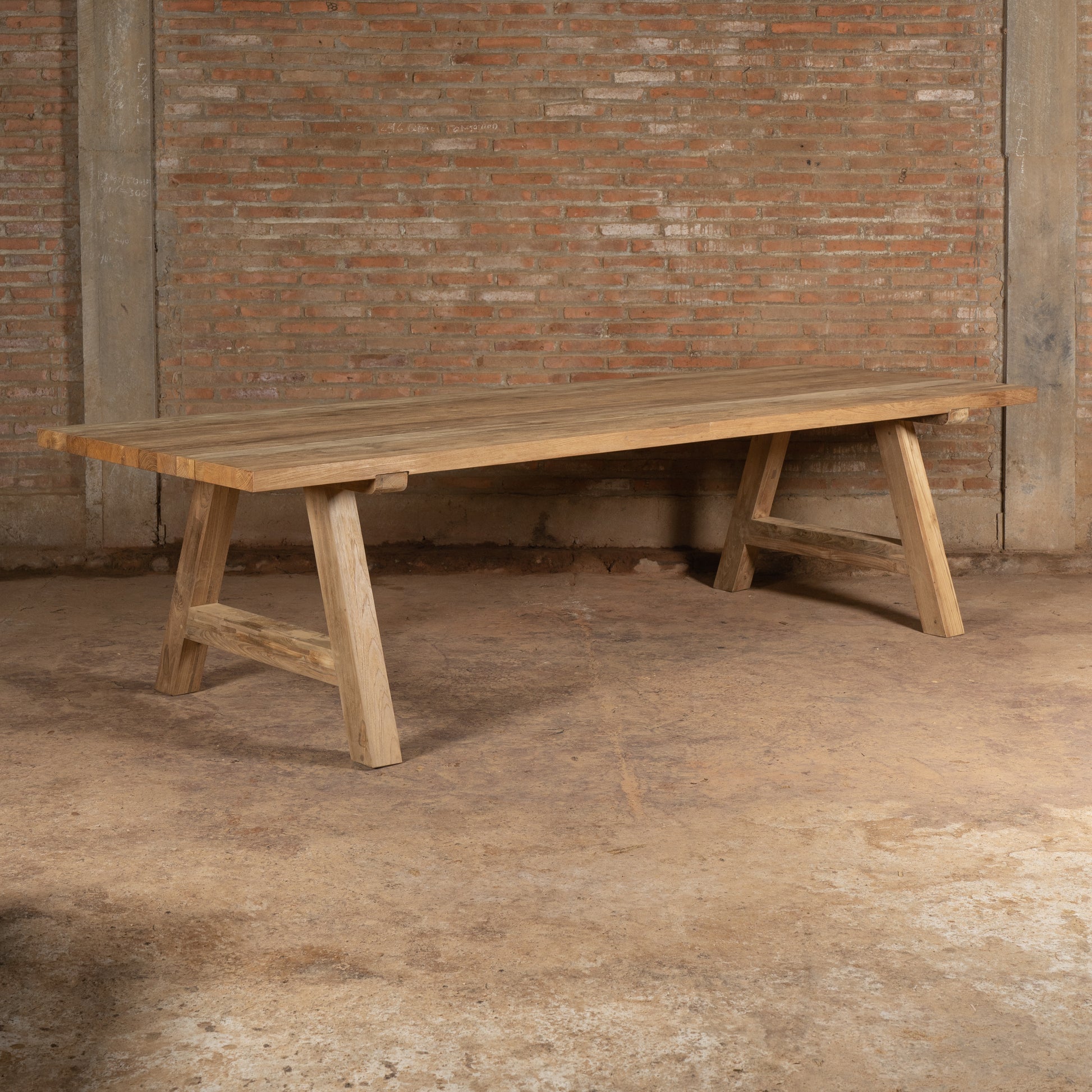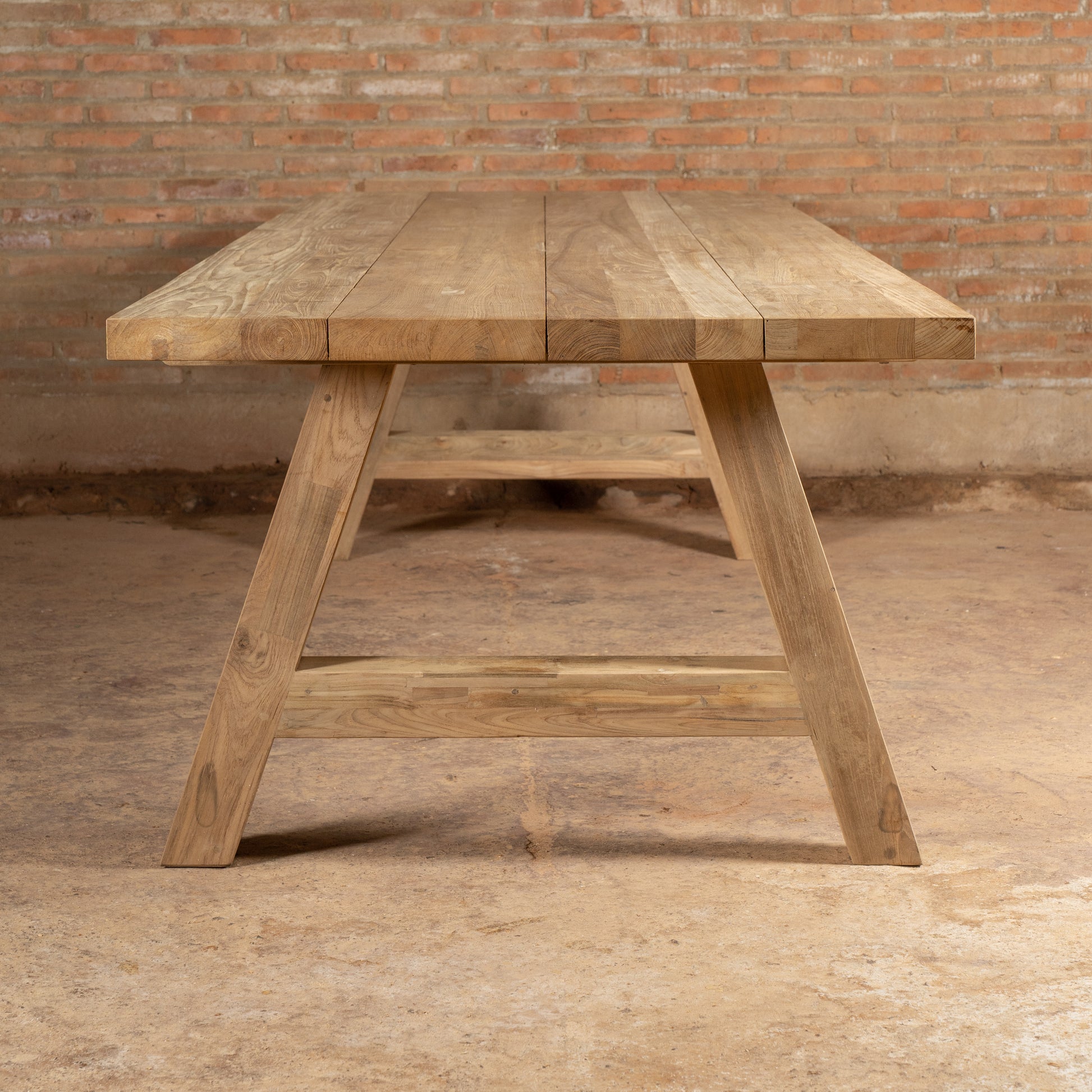 - Tabletop: The rectangular tabletop is 200 cm long and 100 cm wide, made of 5 cm thick solid premium teak . This thickness ensures impressive stability and durability.