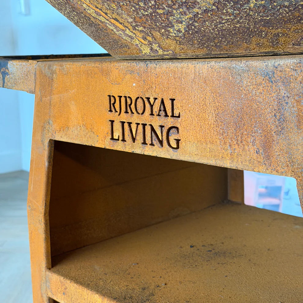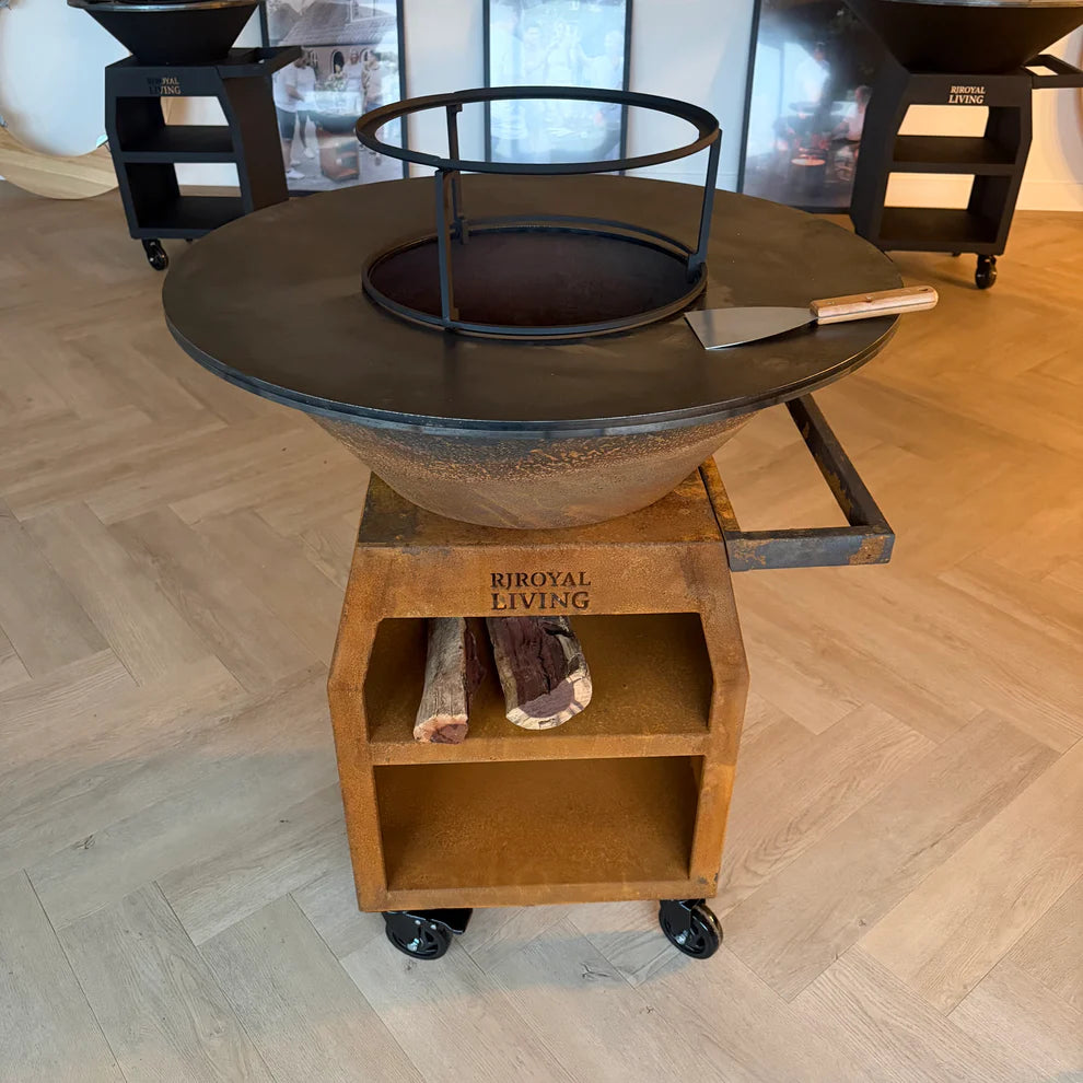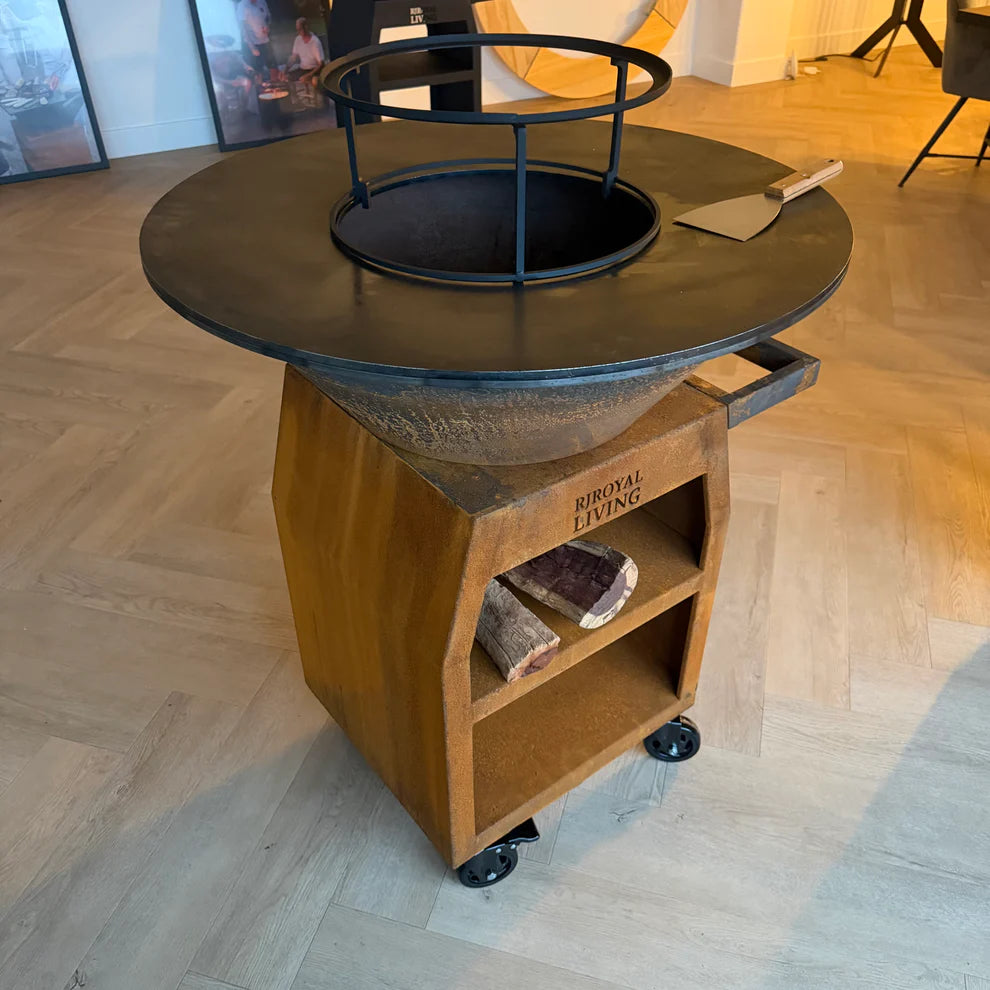 BBQ Plancha Grill Maestro XXL Ø80cm Cortenstaal - Met pook en houtopslag